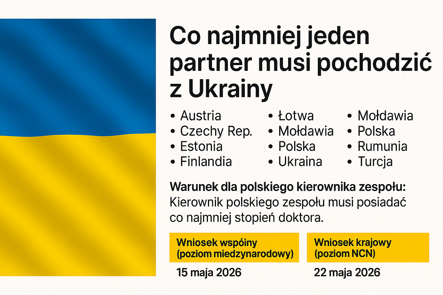 Konkurs skierowany jest do polskich zespołów badawczych, które planują realizację dwustronnych lub trójstronnych projektów badawczych wraz z partnerami z państw uczestniczących w programie Weave, m.in. ze Słowenii (ARIS), Austrii (FWF), Czech (GAČR), Niemiec (DFG), Szwajcarii (SNSF), Luksemburga (FNR) i Belgii‑Flandrii (FWO). [ncn.gov.pl]