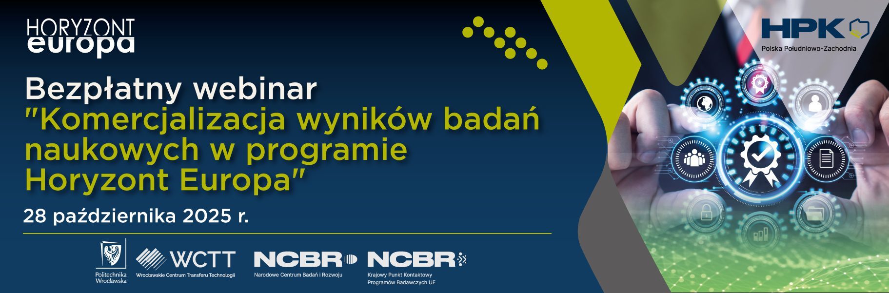 Wrocławskie Centrum Transferu Technologii oraz Horyzontalny Punkt Kontaktowy Polska Południowo-Zachodnia zapraszają na bezpłatne szkolenie online poświęcone komercjalizacji wyników badań naukowych w ramach programu Horyzont Europa. Wydarzenie odbędzie się 28 października 2025 r. w godzinach 10:00-11:00. Szkolenie skierowane jest do pracowników naukowych, doktorantów oraz osób zaangażowanych w obsługę projektów badawczych w uczelniach i jednostkach naukowych. Podczas spotkania uczestnicy poznają kluczowe zagadnienia dotyczące: celów, form i metod komercjalizacji wyników badań, roli centrów transferu technologii i spółek celowych uczelni w procesie wdrażania rezultatów badań na rynek. Spotkanie poprowadzą eksperci z Wrocławskiego Centrum Transferu Technologii, którzy podzielą się swoją wiedzą oraz praktycznym doświadczeniem w […]